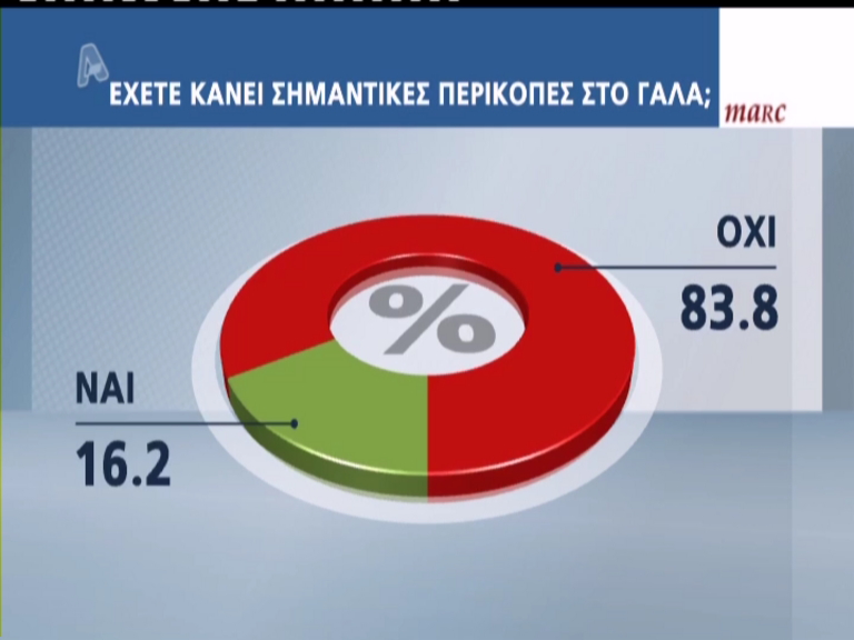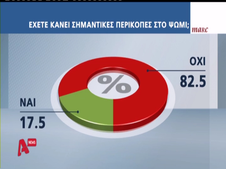 Την ίδια στιγμή, σοκ προκαλεί το γεγονός ότι το 17,5% των πολιτών έχουν κάνει σημαντικές περικοπές στο ψωμί και το 16,2% στο γάλα.