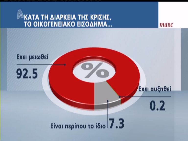 Σε ποσοστό 92,5% οι πολίτες απάντησαν πως το οικογενειακό τους εισόδημα έχει μειωθεί κατα την διάρκεια της κρίσης.