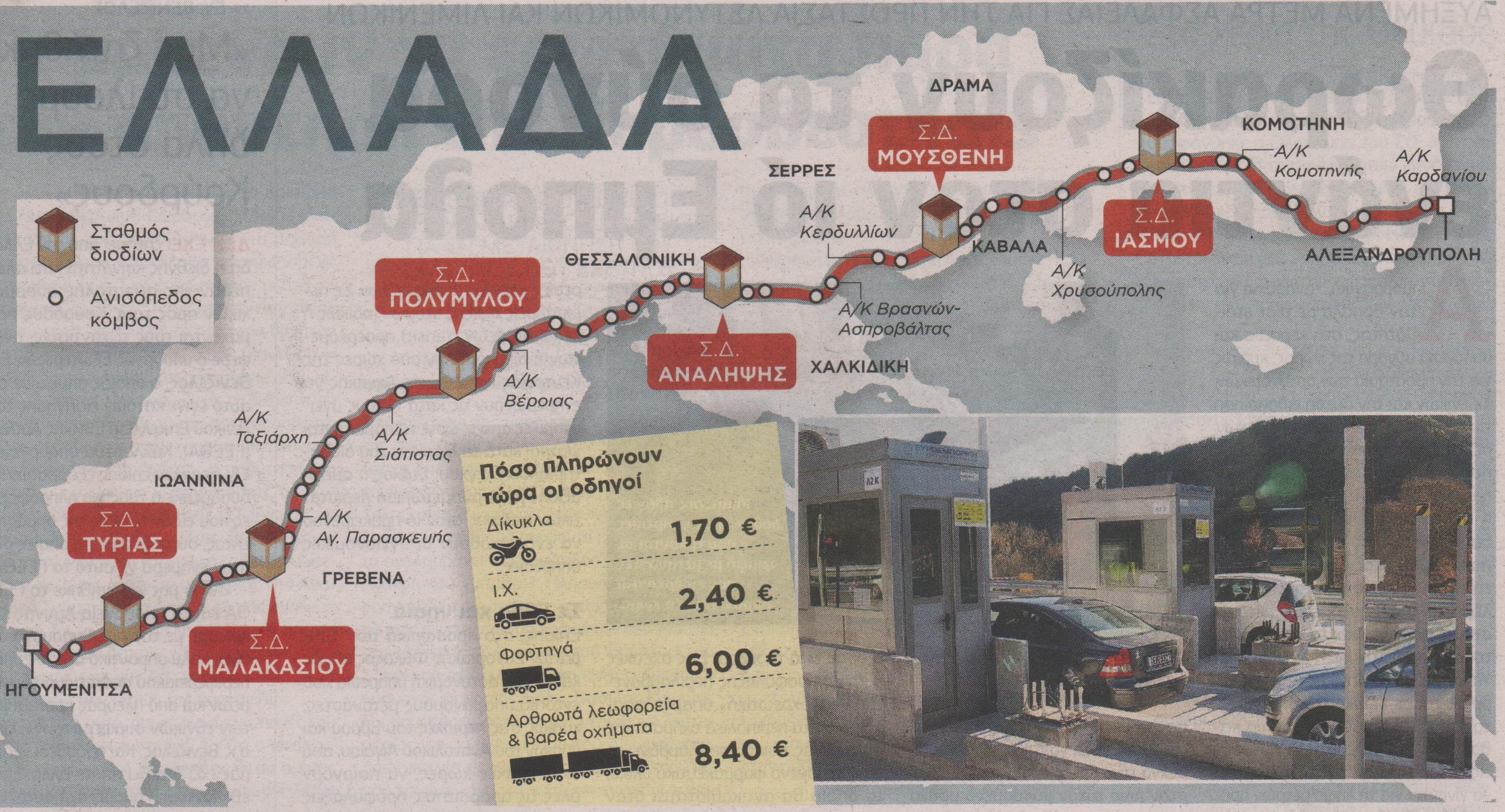 Αυτό σημαίνει ότι τα τέλη που καταβάλλονται από τους οδηγούς στους σταθμούς διοδίων στης Εγνατίας θα είναι ανάλογα με την απόσταση που διανύουν στον εν λόγω αυτοκινητόδρομο.