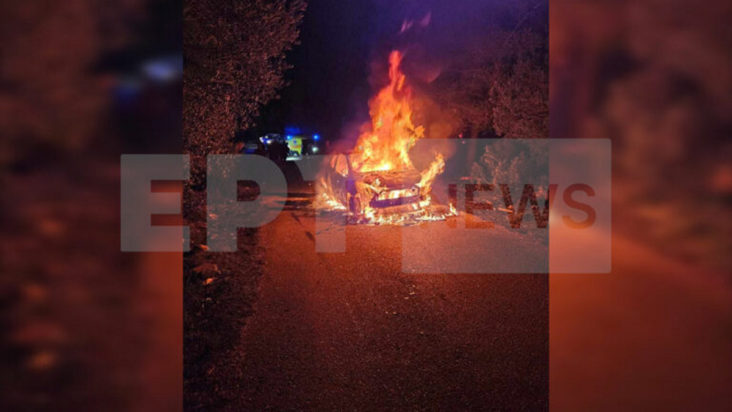 Σε βίντεο που μετέδωσε η ΕΡΤ φαίνεται το αμάξι, στο οποίο βρέθηκε απανθρακωμένος ο επιχειρηματίας, να είναι τυλιγμένο στις φλόγες.