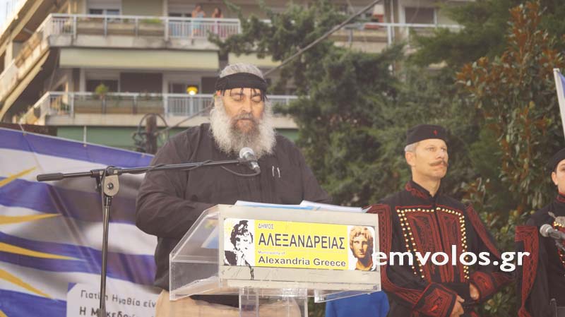Αν και οι καιρικές συνθήκες πήγαν κόντρα στο προγραμματισμένο συλλαλητήριο (ξεκίνησε να βρέχει μισή ώρα πριν την έναρξη), αρκετός κόσμος συγκεντρώθηκε μπροστά στο Πνευματικό Κέντρο Αλεξάνδρειας, στην Ημαθία προκειμένου να φωνάξει για την ελληνικότητα της Μακεδονίας.