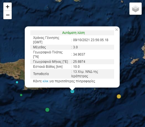 Δύο ασθενείς σεισμοί σημειώθηκαν στην Κρήτη πριν από λίγο 3 Ρίχτερ και 2,8 Ρίχτερ.