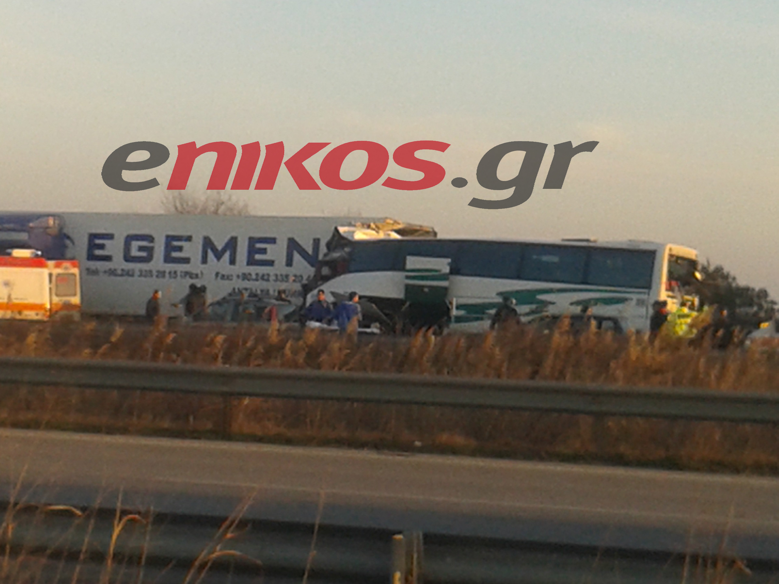 Δύο άτομα έχασαν τη ζωή τους στο τροχαίο που σημειώθηκε στην εθνική οδό Αθηνών – Θεσσαλονίκης, σε απόσταση τριών χιλιομέτρων από τα διόδια Νέων Μαλγάρων, με κατεύθυνση προς τη Θεσσαλονίκη. Νεκρές είναι πιθανότατα δύο γυναίκες που επέβαιναν στο λεωφορείο.