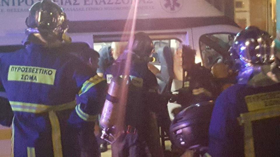 Η ηλικιωμένη με ασθενοφόρο του ΕΚΑΒ μεταφέρθηκε στο Γενικό νοσοκομείο Λάρισας. Επίσης σύμφωνα με πληροφορίες στο νοσοκομείο μεταφέρθηκε και μια ακόμη νεαρή γυναίκα με εγκαύματα.