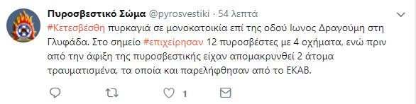 Στο σημείο έσπευσαν ισχυρές πυροσβεστικές δυνάμεις με 12 πυροσβέστες και 4 οχήματα και έσβησαν τη φωτιά στη μονοκατοικία.