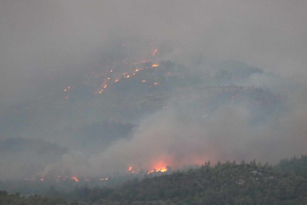 Δύσκολη προβλέπεται και η αποψινή νύχτα στη Ρόδο, εξαιτίας των αναζωπυρώσεων που σημειώνονται στο μέτωπο της φωτιάς.