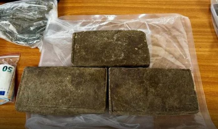 Σε έρευνες που πραγματοποιήθηκαν σε δασώδη περιοχή με πυκνή βλάστηση, βρέθηκαν και κατασχέθηκαν 1.475 γραμμάρια ηρωίνης, σε μορφή πλακών, καθώς και συσκευασία περιτυλίγματος, με ίχνη ηρωίνης, τα οποία ήταν επιμελώς κρυμμένα σε κορμό δέντρου καλυμμένα με ξερά χόρτα και χώμα.