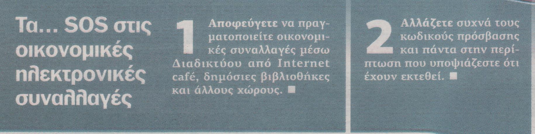 Δείτε παρακάτω τα… sos στις οικονομικές ηλεκτρονικές συναλλαγές: