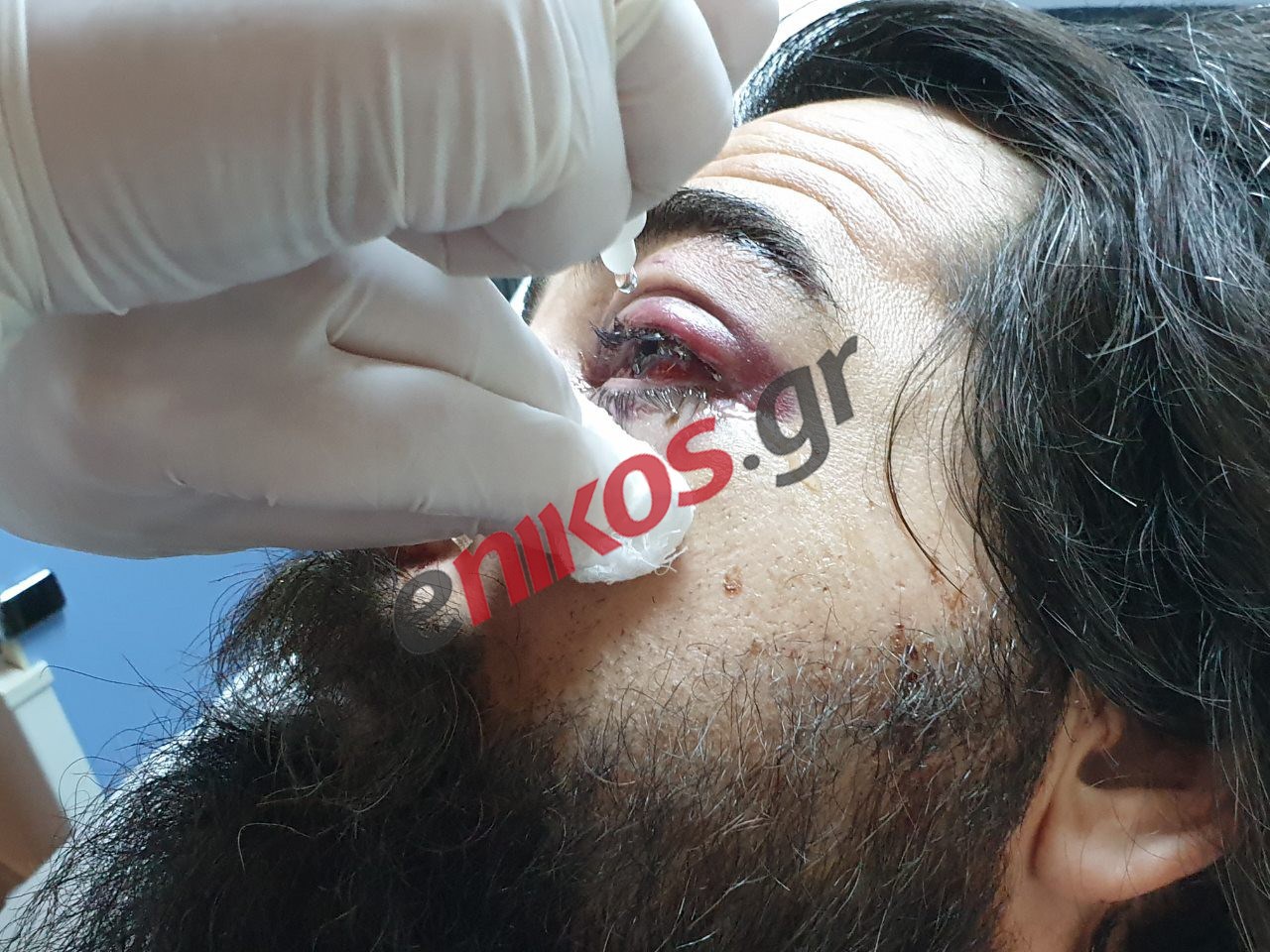 Δεν πέρασαν παρά δευτερόλεπτα και παρενέβη και ο 31χρονος, προκειμένου να βοηθήσει τους φίλους του. Ήταν αυτός, που σύμφωνα με τον 38χρονο, δέχθηκε το πιο δυνατό χτύπημα. «Ένας αστυνομικός τον χτύπησε με γκλοπ στο πρόσωπο με γκλοπ, κοντά στη μύτη και το μάτι. Όπως του είπαν οι γιατροί το μάτι του έχει κοπεί στα δύο, γι αυτό και έχει επέλθει τύφλωση» λέει ο 38χρονος, τον οποίο το enikos.gr συνάντησε στον Ερυθρό Σταυρό, στο πλευρό του 31χρονου φίλου και κουμπάρου του.