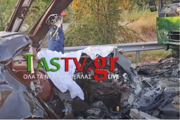 Το αυτοκίνητο καρφώθηκε κάτω από την νταλίκα και μεταμορφώθηκε σε άμορφη μάζα σιδερικών. Οι εικόνες είναι τρομακτικές και αποκαλύπτουν την σφοδρότητα της σύγκρουσης. Το μπροστινό τμήμα του αυτοκινήτου έχει κυριολεκτικά διαλυθεί και ουσιαστικά έμεινε μόνο το πορτ παγκάζ.