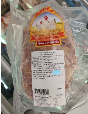 Ρολό κοτόπουλο με μπέικον και τυρί ανακαλεί από την αγορά ο Ενιαίος Φορέας Ελέγχου Τροφίμων.