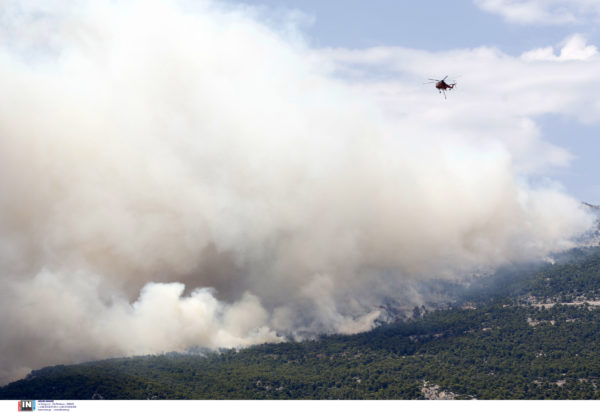 Σε δύο μέτωπα η φωτιά στην Πάρνηθα