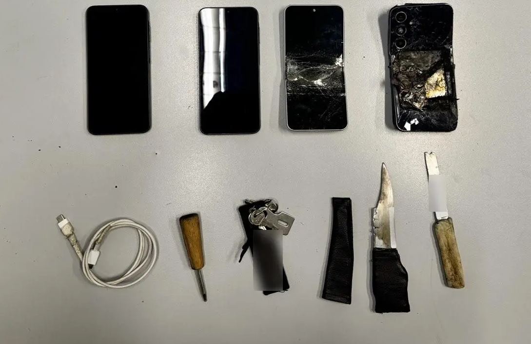 Στο πλαίσιο των ερευνών, κατά περίπτωση, βρέθηκαν και κατασχέθηκαν, 2 μαχαίρια, αυτοσχέδιο σουβλί, 4 κινητά τηλέφωνα, φορτιστής κινητών τηλεφώνων, κρίκος με 3 κλειδιά, καθώς και ιδιόχειρες σημειώσεις.