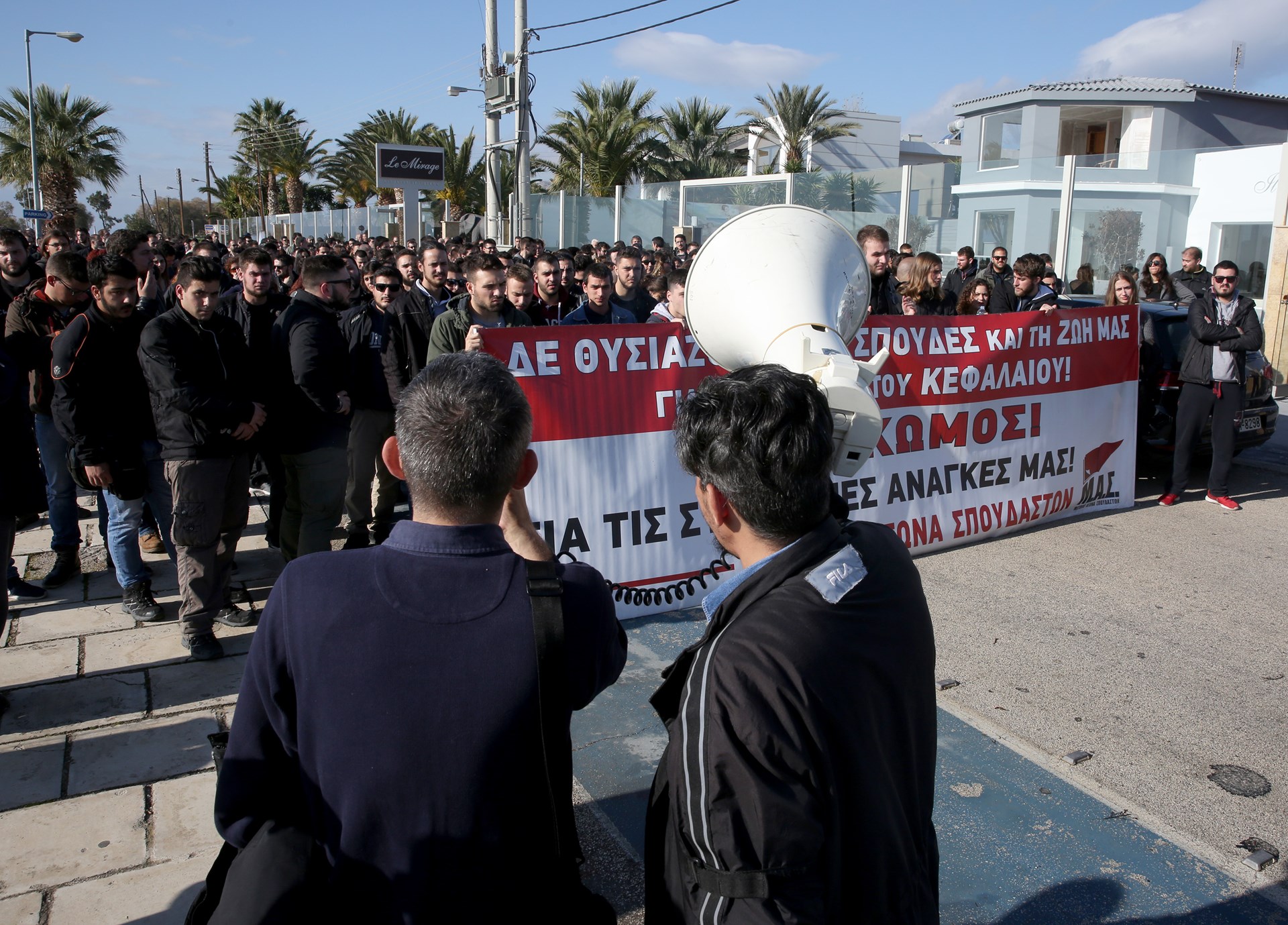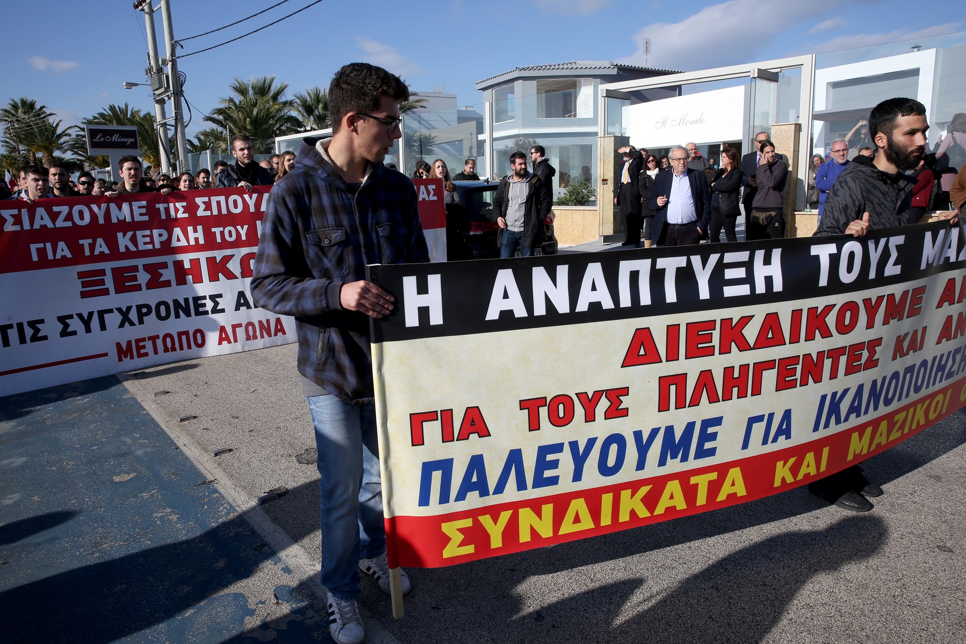 Τα μέλη του ΠΑΜΕ, τα σωματεία και οι φορείς έκαναν πορεία αποχωρώντας από το κτίριο του συνεδρίου.