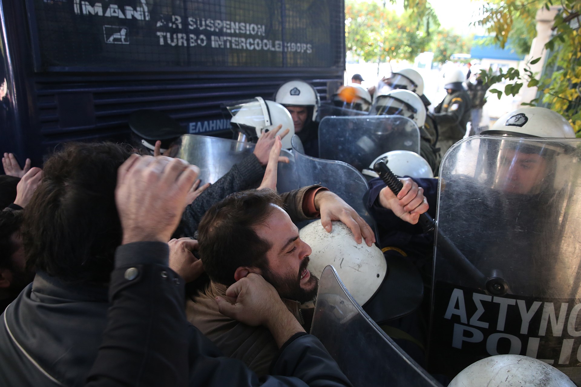 Ένας αστυνομικός τραυματίστηκε στο κεφάλι, ενώ ελαφρά τραυματίστηκε και ένας διαδηλωτής.