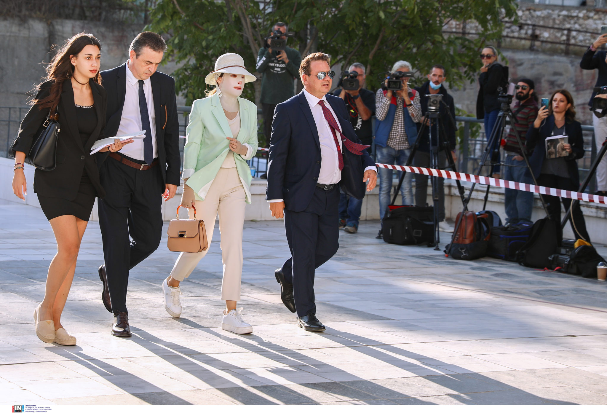 Η Ιωάννα έφτασε στο δικαστήριο συνοδευόμενη από τους δικηγόρους της, Απόστολο Λύτρα και Νίκο Αλεξανδρή. Φορούσε την προστατευτική μάσκα στο πρόσωπό της και καπέλο, όπως και την προηγούμενη φορά.