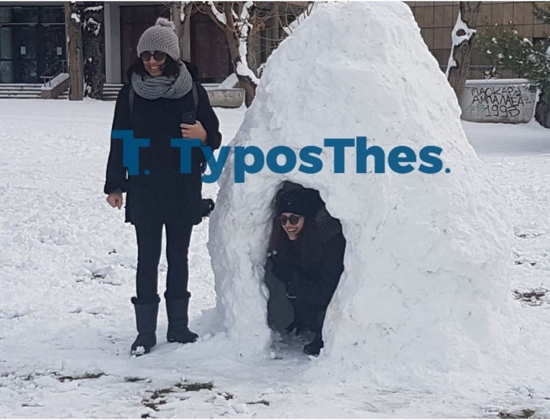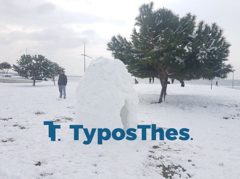 Έτσι αποφάσισαν κάποιοι Θεσσαλονικείς να πάνε τις χιονοκατασκευές στο επόμενο επίπεδο. Δημιούργησαν μαζί με τον χιονάνθρωπο και ένα ιγκλού με θέα τον Λευκό Πύργο.