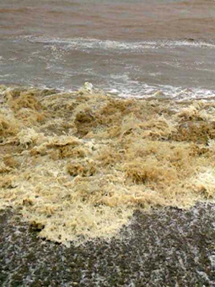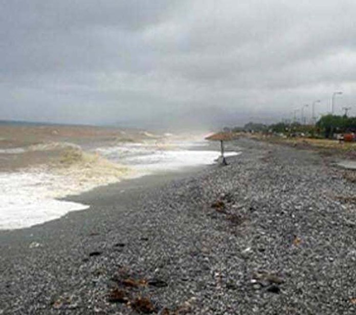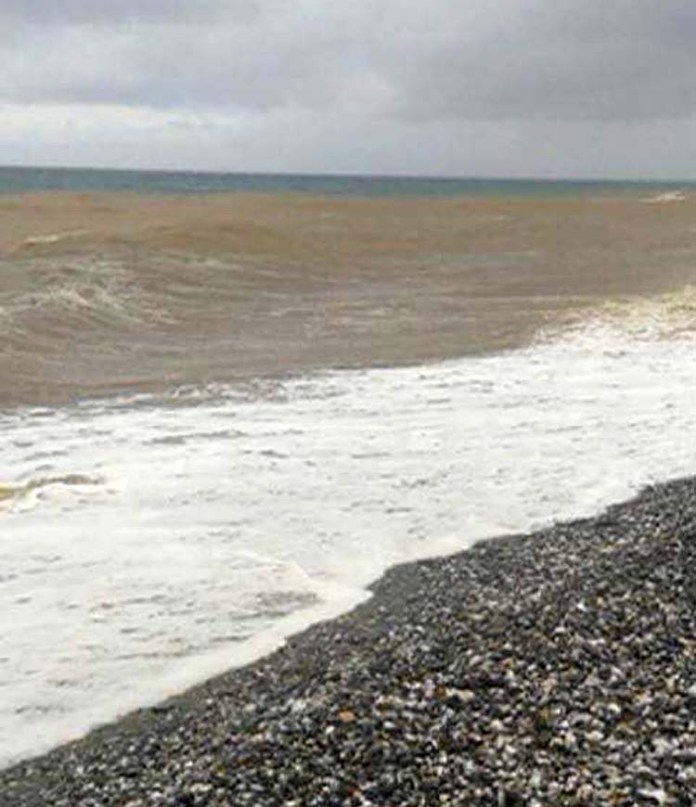 Από τους ισχυρούς ανέμους και την κακοκαιρία μάλιστα, η θάλασσα απέκτησε ένα ιδιαίτερο καφέ χρώμα.