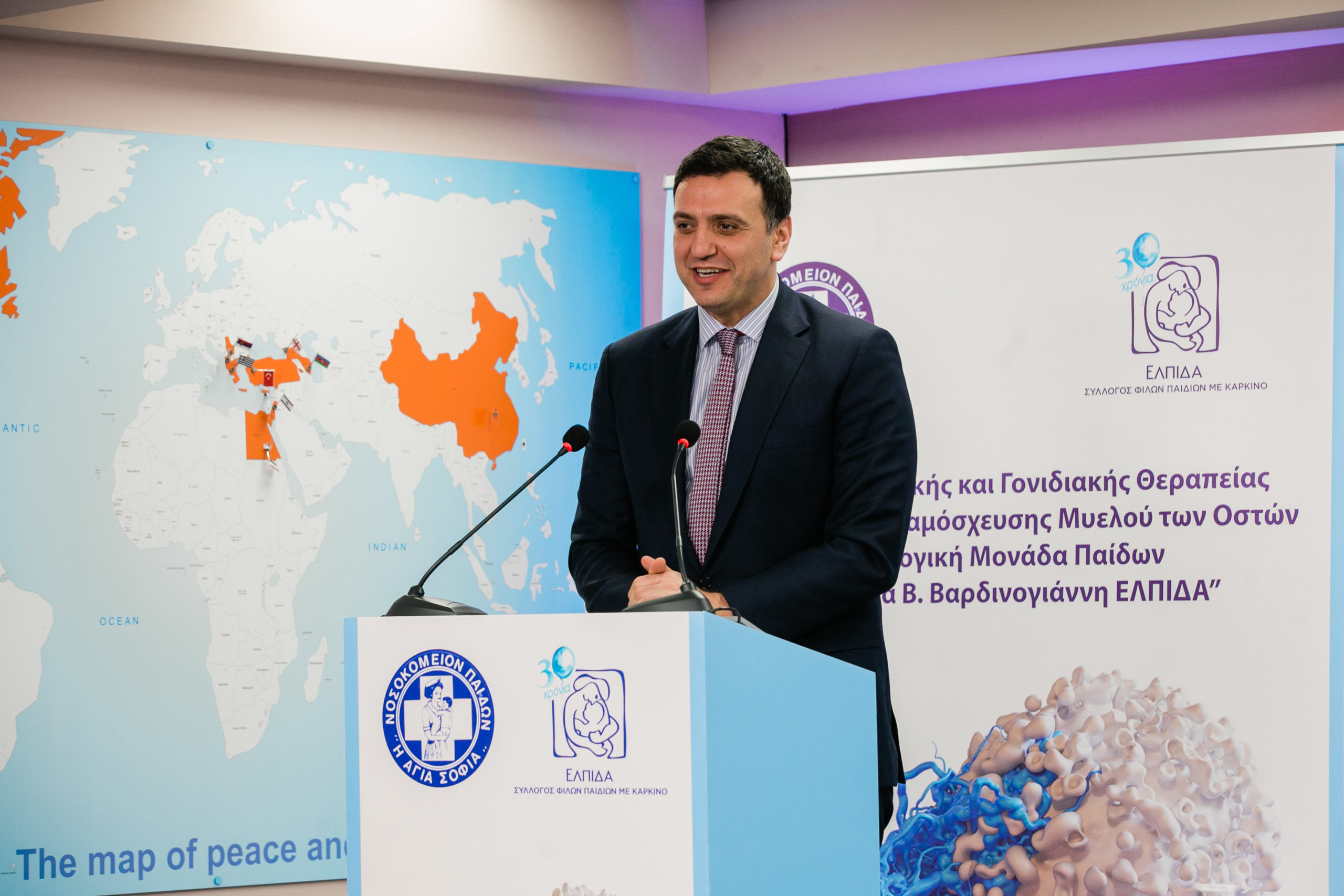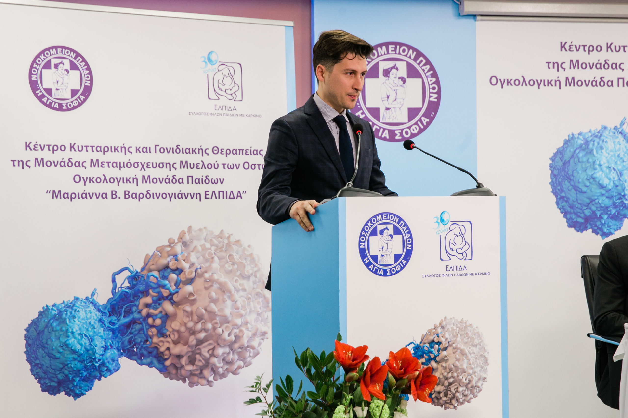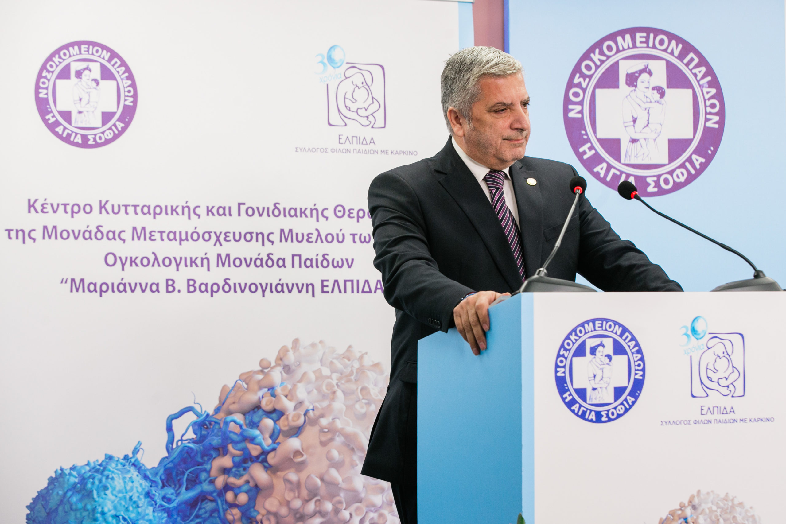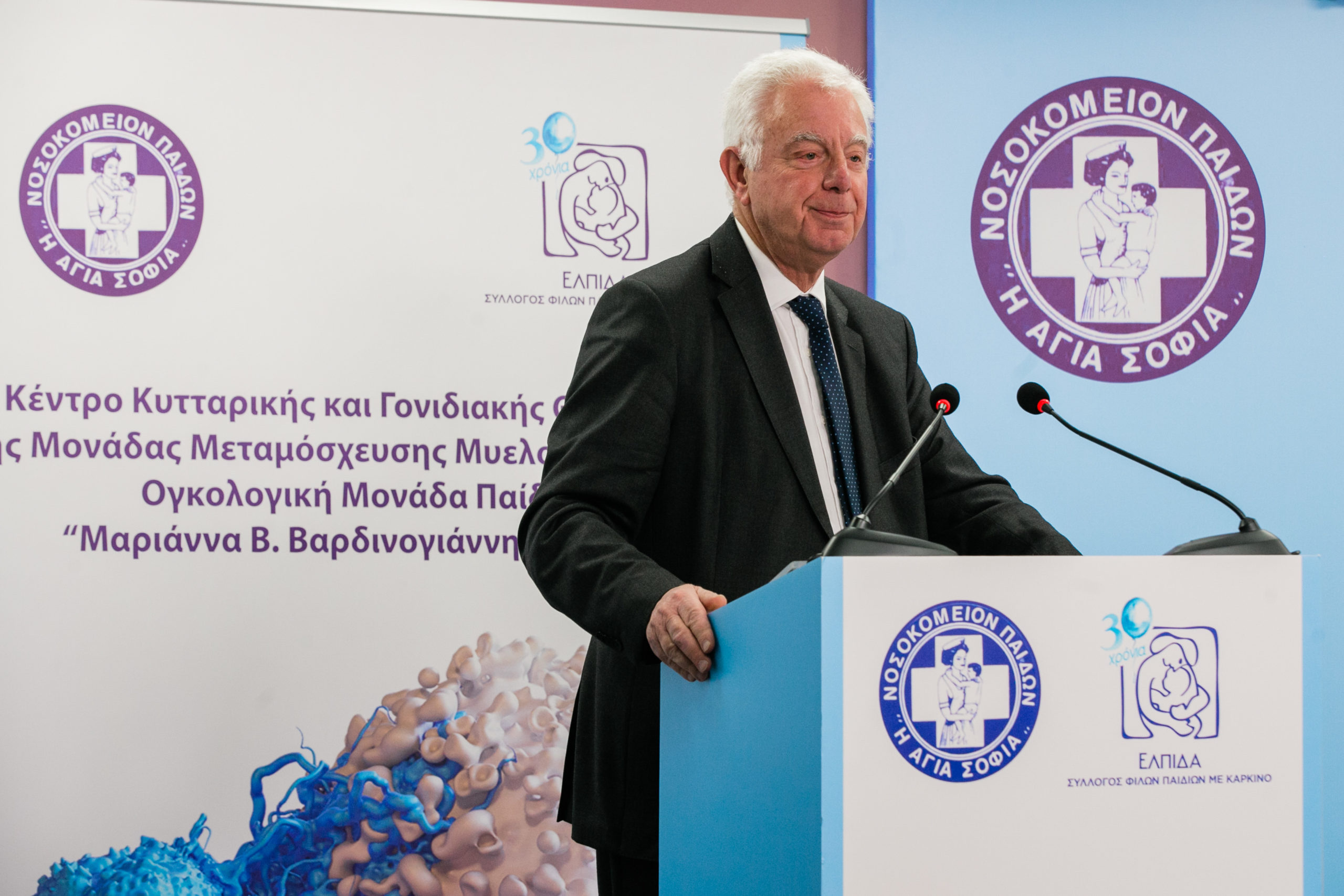 Ο Διοικητής των Νοσοκομείων Παίδων «Η ΑΓΙΑ ΣΟΦΙΑ» και «Π.&Α. ΚΥΡΙΑΚΟΥ» κύριος Μανώλης Παπασάββας μίλησε αναλυτικά για την προσφορά της «ΕΛΠΙΔΑΣ» στην Ογκολογική Μονάδα Παιδων αλλά και για τη σημασία της δημιουργίας του Κέντρου Κυτταρικής και Γονιδιακής Θεραπείας: «Έχοντας πλέον δαπανηθεί πάνω από 50.000.000€ που αποτελούν δωρεά του Συλλόγου ΕΛΠΙΔΑ, το Ογκολογικό μας Νοσοκομείο συγκαταλέγεται πλέον στα κορυφαία Ογκολογικά Κέντρα του κόσμου. Ο υπερσύγχρονος εξοπλισμός του με μοναδικά μηχανήματα και άρτια εκπαιδευμένο ιατρικό προσωπικό, εξασφαλίζουν τις απαιτούμενες συνθήκες έτσι ώστε τα παιδιά να έχουν τη δυνατότητα να λαμβάνουν την ίδια θεραπεία με αυτή που λαμβάνουν τα παιδιά στα μεγάλα κέντρα του εξωτερικού».