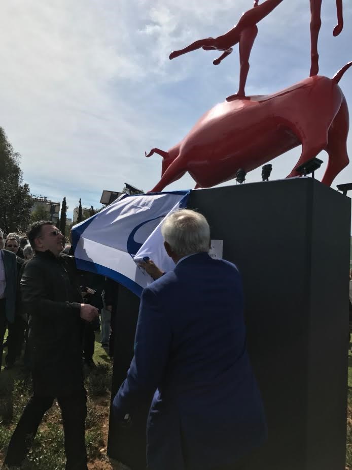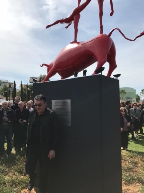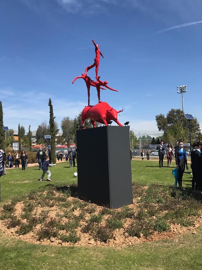 Την Κυριακή 19 Μαρτίου πραγματοποιήθηκαν τα επίσημα αποκαλυπτήρια του γλυπτού «ΧΡΟΝΙΚΟΝ Α», έργο του καταξιωμένου διεθνώς γλύπτη Κωστή Γεωργίου, στο νέο πάρκο 22 στρεμμάτων στο βυζαντινό εκκλησάκι του Αγίου Γεωργίου στο Τροκαντερό, το οποίο ανήκει στον Δήμο Παλαιού Φαλήρου. Το έργο εγκαταστάθηκε στο υπέροχο αυτό πάρκο μετά από την έντονη επιθυμία και την σημαντική υποστήριξη του δυναμικού Δημάρχου, Διονύση Χατζηδάκη.Η τελετή υπήρξε μεγαλειώδης, με μεγάλο πλήθος επισκεπτών που κατέκλυσε κυριολεκτικά το νέο χώρο. Τα εγκαίνια έγιναν από τον Υφυπουργό Οικονομίας και Ανάπτυξης, κ. Στέργιο Πιτσιόρλα και από την περιφερειάρχη Αττικής, κ. Ρένα Δούρου. Το έργο «ΧΡΟΝΙΚΟΝ Α» του Κωστή Γεωργίου αποτελεί ένα μνημειακών διαστάσεων σύμπλεγμα ενός ταύρου με τρεις χορευτές που σκαρφαλώνουν στην πλάτη του και έχει μια έμμεση αναφορά στα Αρχαία Ταυροκαθάψια. Πρόκειται για έργο μοναδικό που θα κοσμεί μόνο τον δήμο Παλαιού Φαλήρου και το νέο πάρκο, καθώς το συγκεκριμένο γλυπτό δεν θα αναπαραχθεί σε άλλα αντίτυπα. Το έργο χυτεύθηκε από το πρωτότυπο σε ορείχαλκο για να επιχρισθεί στη συνέχεια με κόκκινο χρώμα που είναι και το χαρακτηριστικό στοιχείο της δουλειάς των τελευταίων ετών του διεθνούς φήμης γλύπτη. Το έργο είναι χορηγία της LAMDA DEVELOPMENT προς τον δήμο Π. Φαλήρου.Προσφάτως δε, εγκαταστάθηκαν και τα μνημειακών διαστάσεων γλυπτά του καλλιτέχνη «ANATASIS» και «EQUUS», το ένα στην κεντρική πλατεία της Βούλας και το άλλο στην παραλιακή λεωφόρο στο ύψος της Βουλιαγμένης μπροστά στην πλαζ.Έργα διαστάσεων δεκαπέντε μέτρων έχουν εγκατασταθεί στη Σαγκάη, ακόμη στο νοσοκομείο SAINΤ ELIZABETH HOSPITAL στις Βρυξέλλες καθώς και σε δημόσιους χώρους στην Κίνα.Ο Κωστής Γεωργίου εκθέτει στα μεγαλύτερα μουσεία της Ευρώπης, Κίνας, Ιαπωνίας, κλπ. Πρόσφατα η αναδρομική του έκθεση που ξεκίνησε από το διάσημο μουσείο «ΣΟΥΤΣΧΟΥ» στην Κίνα μεταφέρθηκε στο μουσείο «ΣΑΑΝΞΙ» και σε άλλα μουσεία της Κίνας και ταξίδεψε στη συνέχεια στο Σικάγο, στις Βρυξέλλες (στο Μουσείο UCCLE), στη Γαλλία (στο MUSEEE D’ ANGLET) για να καταλήξει τελικά στο μουσείο Μπενάκη.