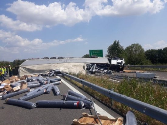 Oδηγός νταλίκας έχασε τον έλεγχο του οχήματος από άγνωστη μέχρι στιγμής αιτία, με αποτέλεσμα να ντεραπάρει και στη συνέχεια να «διπλώσει» στην άσφαλτο περνώντας κατά το ήμισυ στο αντίθετο ρεύμα.