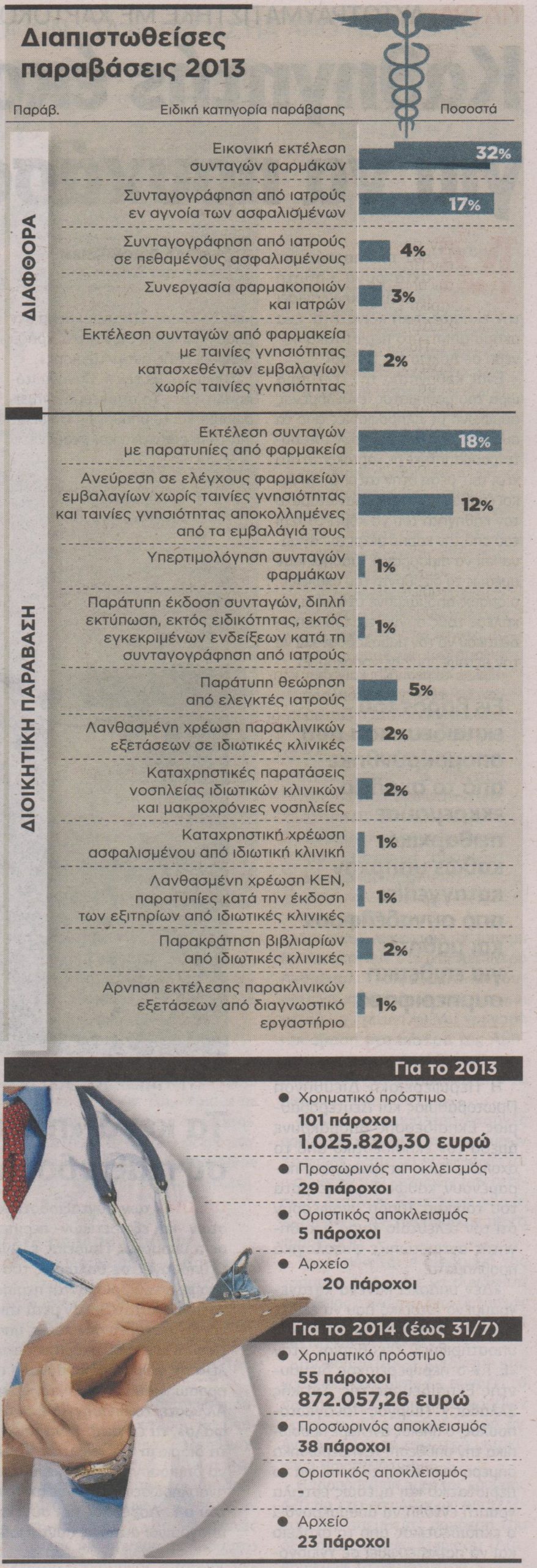 Τα στοιχεία από τους ελέγχους της Υπηρεσίας Ελέγχου Δαπανών Υγείας δείχνουν ότι το μεγαλύτερο ποσοστό υποθέσεων διαφθοράς εντοπίζεται στην εικονική εκτέλεση συνταγών φαρμάκων… ακόμα και σε πεθαμένους!