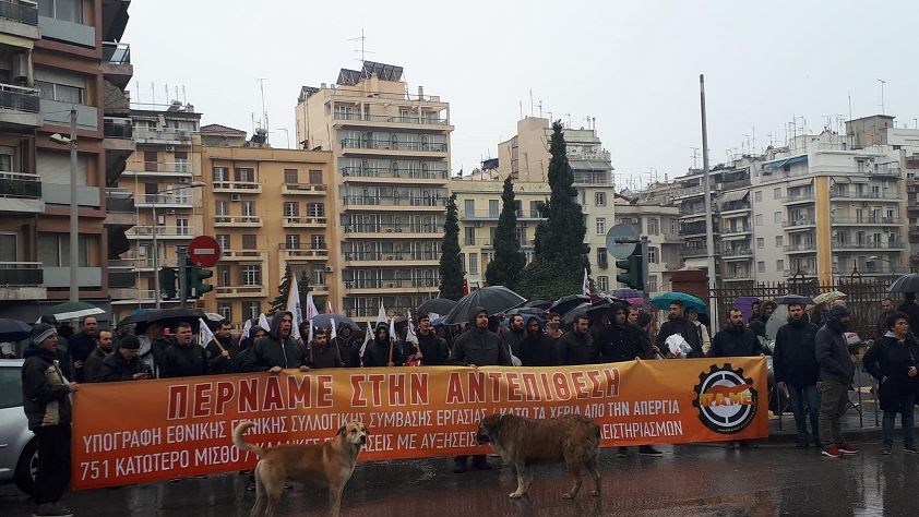 Πραγματοποιήθηκε η πορεία διαμαρτυρίας από μέλη του ΠΑΜΕ στο κέντρο της Θεσσαλονίκης, στο πλαίσιο των απεργιακών τους κινητοποιήσεων, κατά του πολυνομοσχεδίου.