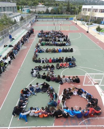 Οι μαθητές Λυκείου της Ραφήνας έστειλαν το δικό τους μήνυμα για όλα όσα έγιναν σχηματίζοντας στο προαύλιο με τα σώματά τους το όνομα “Βαγγέλης”.