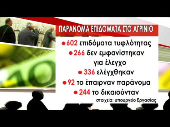 Σύμφωνα με τα πρώτα αποτελέσματα των ελέγχων του κέντρου πιστοποίησης αναπηρίας στο νομό Αιτωλοακαρνανίας, πάνω από 20% των ατόμων που έπαιρναν επιδόματα τυφλότητας και κωφαλαλίας αποδείχθηκε ότι δεν τα δικαιούνταν. Ο αριθμός των αναπηρικών επιδομάτων «μαϊμού» δεν αποκλείεται να αυξηθεί πολύ περισσότερο όταν ολοκληρωθούν οι έλεγχοι, αφού εκατοντάδες δικαιούχοι δεν προσήλθαν για να απογραφούν.