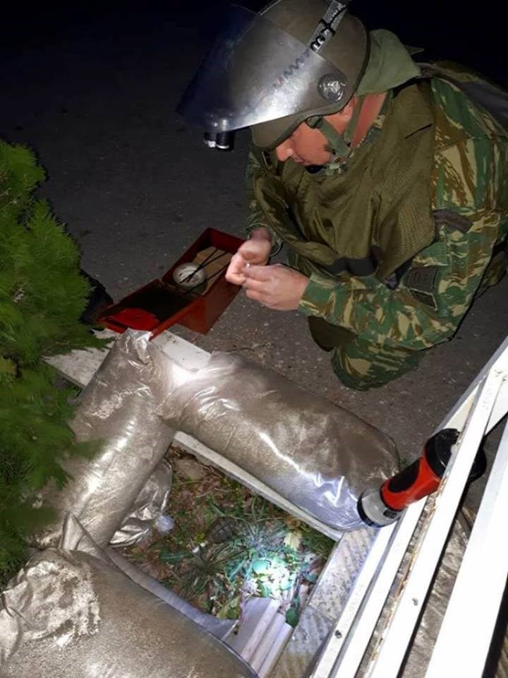 Το κλιμάκιο Πυροτεχνουργών του Τάγματος Εκκαθάρισης Ναρκοπεδίων Ξηράς (ΤΕΝΞ), έσπευσε άμεσα στο ξενοδοχείο της περιοχής όπου πραγματοποίησε επιχείρηση αναγνώρισης, απομάκρυνσης και εξουδετέρωσης της αμυντικής χειροβομβίδας F1 ανατολικού τύπου.
