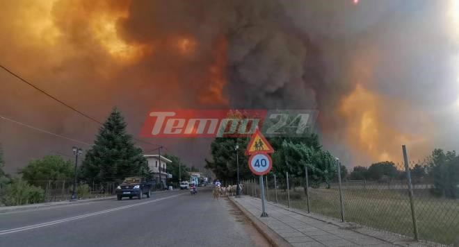 Εικόνες Aποκάλυψης στην Ηλεία. Η φωτιά μαίνεται χωρίς… σταματημό. Το ένα πύρινο μέτωπο διαδέχεται το άλλο. Αυτή τη στιγμή δίνεται μεγάλη μάχη στην είσοδο του χωριού Λάλα προκειμένου να ανακοπεί η φωτιά. Ήδη το πρώτο σπίτι του χωριού, σύμφωνα με το ilialive.gr, έχει παραδοθεί στις φλόγες, ενώ η πυρκαγιά “μπήκε” και στον χώρο ενός φωτοβολταϊκού πάρκου. Στον Λάλα κάηκε επίσης ένα ξενοδοχείο το οποίο βρίσκεται στις παρυφές της δυτικής πλευράς του χωριού. Η φορά του ανέμου, έχει δημιουργήσει έντονη ανησυχία καθώς στρέφεται προς την περιοχή που βρίσκεται το δρυοδάσος της Φολόης. Οι κάτοικοι έχουν απομακρυνθεί από τον οικισμό, με την αγωνία τους για τις περιουσίες τους να έχει… χτυπήσει κόκκινο.