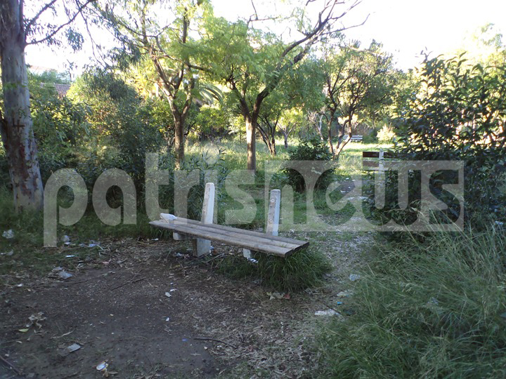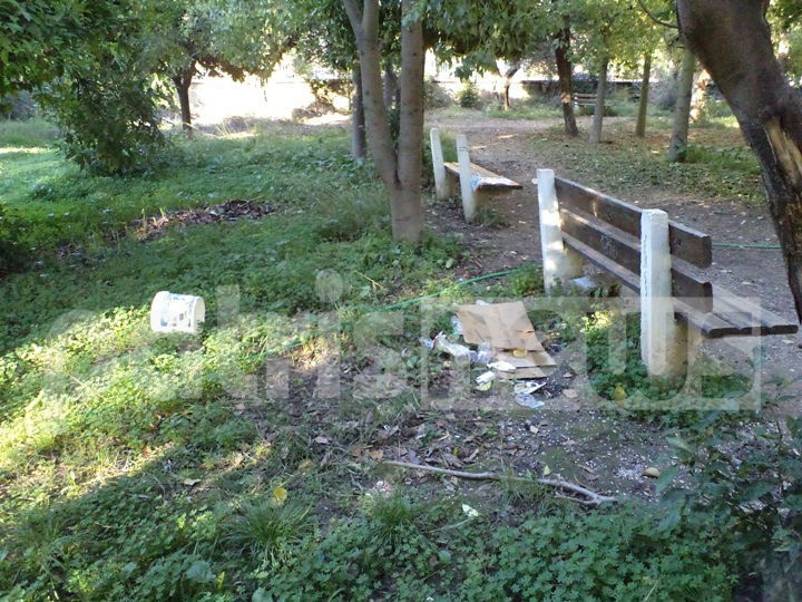 Η λέξη «εγκατάλειψη» φαντάζει ιλαρός χαρακτηρισμός μπροστά στην άθλια κατάσταση που επικρατεί στο πάρκο. Σκουπίδια παντού, ξεχαρβαλωμένα παγκάκια, μονοπάτια που τα έχουν καταπιεί τα χόρτα, σκουριασμένες κατασκευές και μια ακατάλληλη παιδική χαρά έρχεται να συμπληρώσει το σκηνικό της αποσύνθεσης. Βέβαια, τις απόπειρες αποψίλωσης του χώρου μαρτυρούν οι σωροί από κλαδιά και φύλλα που κάποιοι έκοψαν αλλά ποτέ δεν τα απομάκρυναν!