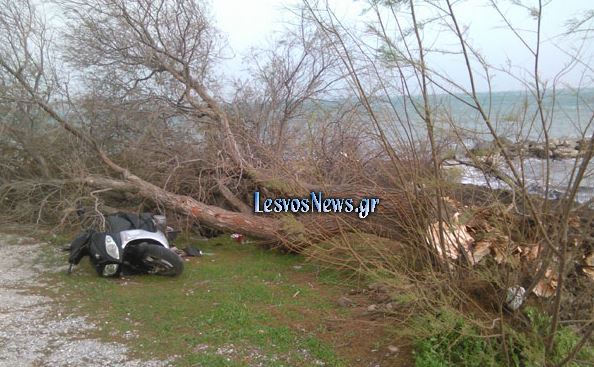 Οι θυελλώδεις άνεμοι που ξεπερνούσαν τα 10 μποφόρ, προκάλεσαν μεγάλα προβλήματα σε ολόκληρο το Νομό Λέσβου.