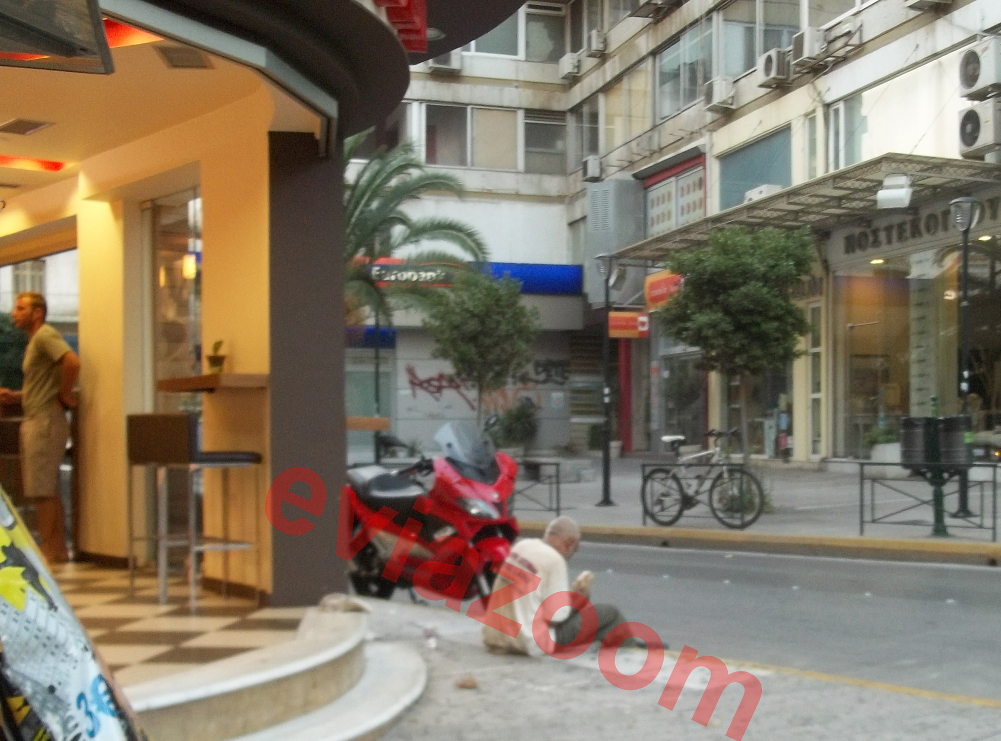Αυξάνεται μέρα με τη μέρα ο αριθμός των συνανθρώπων μας που λόγο της οικονομικής κρίσης βρίσκονται ξαφνικά στο δρόμο χωρίς ένα ευρώ στη τσέπη. Αναγκάζονται να τρώνε από τα σκουπίδια για να επιβιώσουν και να κοιμούνται στα παγκάκια για να ξεκουραστούν. Στη φωτογραφία του eviazoom βλέπετε έναν ακόμη άστεγο άνδρα στη Χαλκίδα να τρώει μια τυρόπιτα που του έδωσε ένας εργαζόμενος σε fast food την ώρα που το κοινωνικό κράτος εθελοτυφλεί.