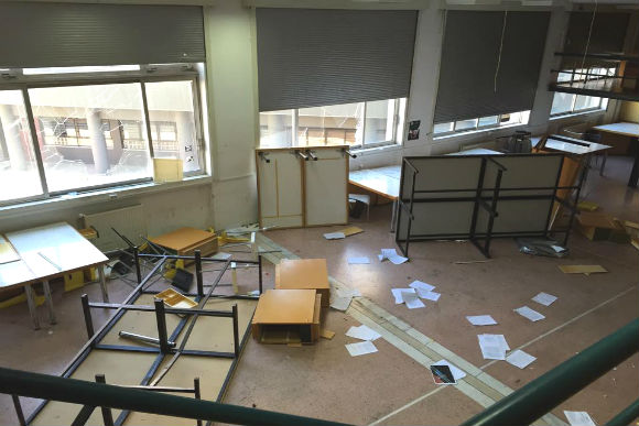Σπασμένες πόρτες και παράθυρα, κατεστραμένα project φοιτητών στους διαδρόμους, πεταμένα και παραβιασμένα συρτάρια αποθήκευσης υλικών…