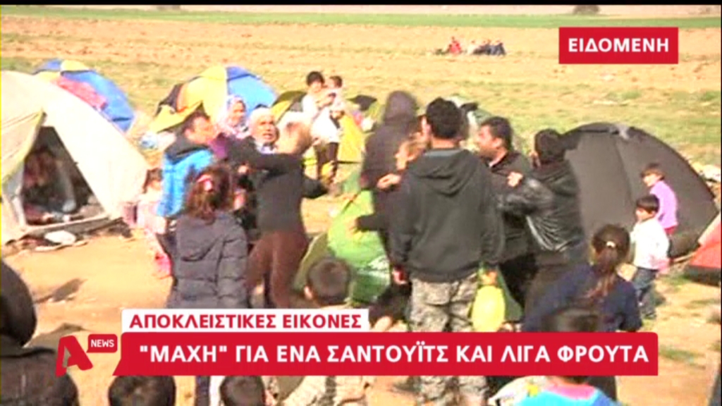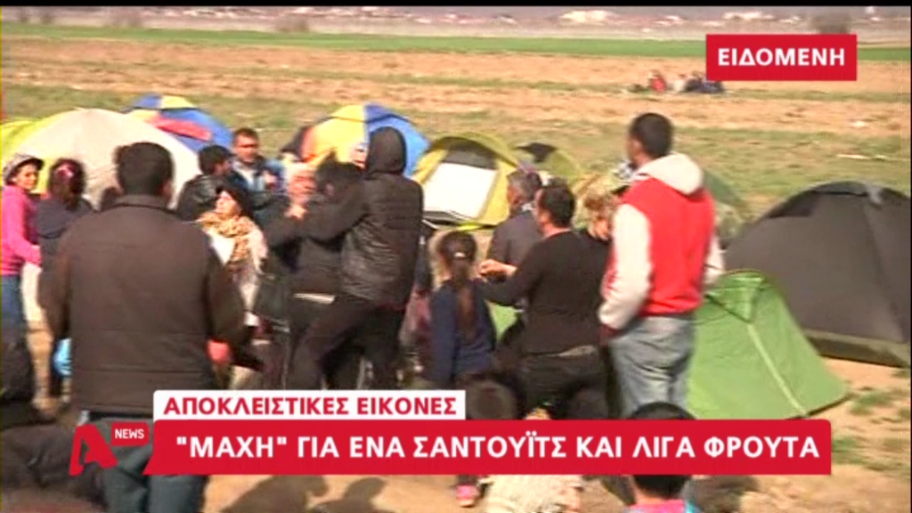 Νωρίς το πρωί δύο οικογένειες προσφύγων ήρθαν στα χέρια για ένα φρούτο και ένα μπουκάλι νερό. «Ζούμε μια αφύσικη ζωή που μας έχει μετατρέψει σε αγρίμια» δηλώνουν οι αλλοδαποί που καθημερινά αντιμετωπίζουν τις σκληρές καιρικές συνθήκες και την πείνα.