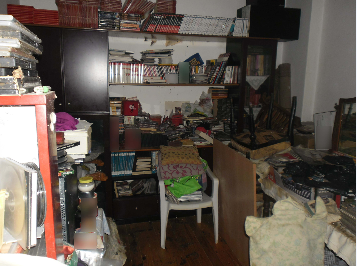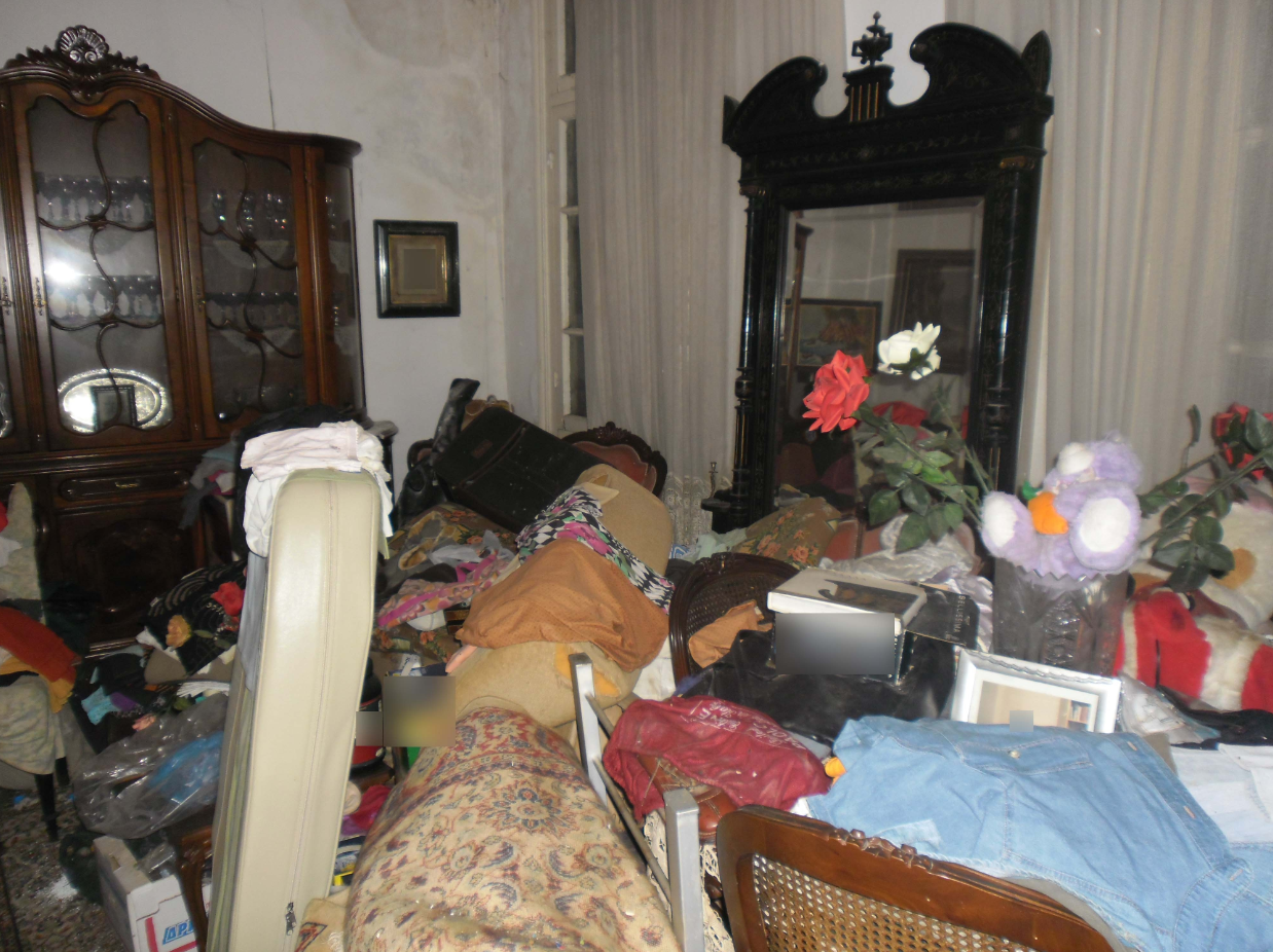 Οι αστυνομικοί που ερεύνησαν το σπίτι μαζί με συνεργείο καθαριότητας του δήμου Θεσσαλονίκης και υπαλλήλους της διεύθυνσης Περιβαλλοντικής Υγιεινής της Περιφέρειας, διαπίστωσαν ελλιπείς συνθήκες καθαριότητας και έντονη δυσοσμία, με πιθανό κίνδυνο υγειονομικής φύσης.