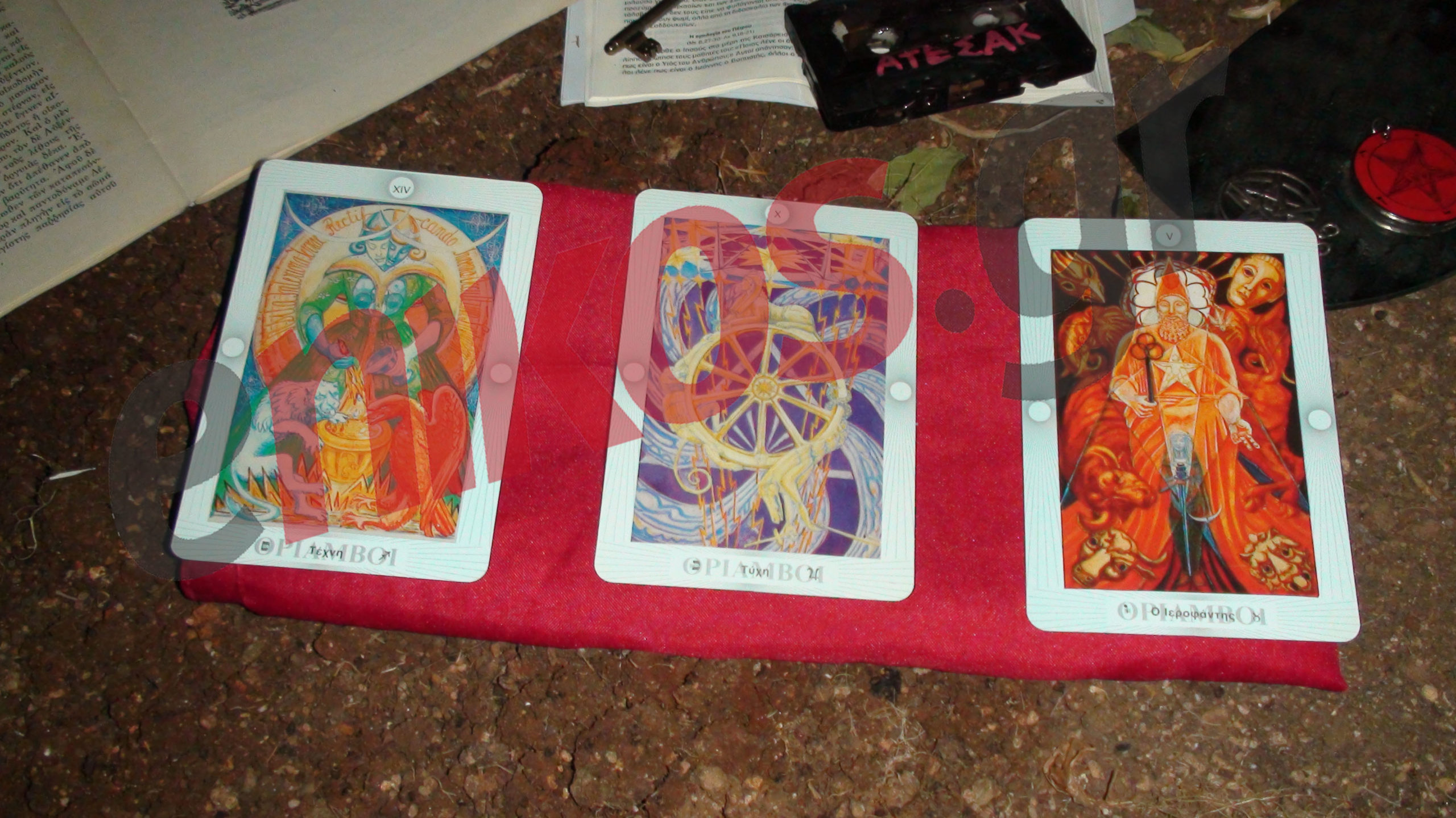 «Θα ήθελα να κάνω μια καταγγελία.Χθες το βράδυ κατά τις 11:30 στη νοτιοδυτική πλευρά του όρους Πεντέλη κοντά στο σπήλαιο Νταβέλη, πάρκαρα το αυτοκίνητό μου και κατέβηκα με μια φίλη μου για να περπατήσουμε και να δούμε την θέα.Παρατηρήσαμε ένα περίεργο φως μέσα από τους θάμνους και πλησιάσαμε από φόβο μήπως είχε πάρει κάποια φωτιά.Προς μεγάλη μας έκπληξη ανακαλύψαμε πως το φως προερχόταν μάλλον από κάποιο κερί που μόλις το πλησιάσαμε έσβησε -πιθανότατα από τον αέρα. Αν και η αλήθεια είναι πως το φως ήταν πολύ δυνατό για να προέρχεται από ένα τόσο μικρό κερί.Φωτίσαμε με τα κινητά και είδαμε τοποθετημένα γύρω από το κερί διάφορα αντικείμενα και χαρτιά με παράξενα σύμβολα. Εκείνη την στιγμή –που παρεμπιπτόντως τραβούσα τις φωτογραφίες που σας έστειλα- ακούσαμε ένα γρύλισμα και ένας σκύλος πετάχτηκε μέσα από τους θάμνους και μας κυνήγησε. Φυσικά εγκαταλείψαμε το σημείο τρέχοντας.»