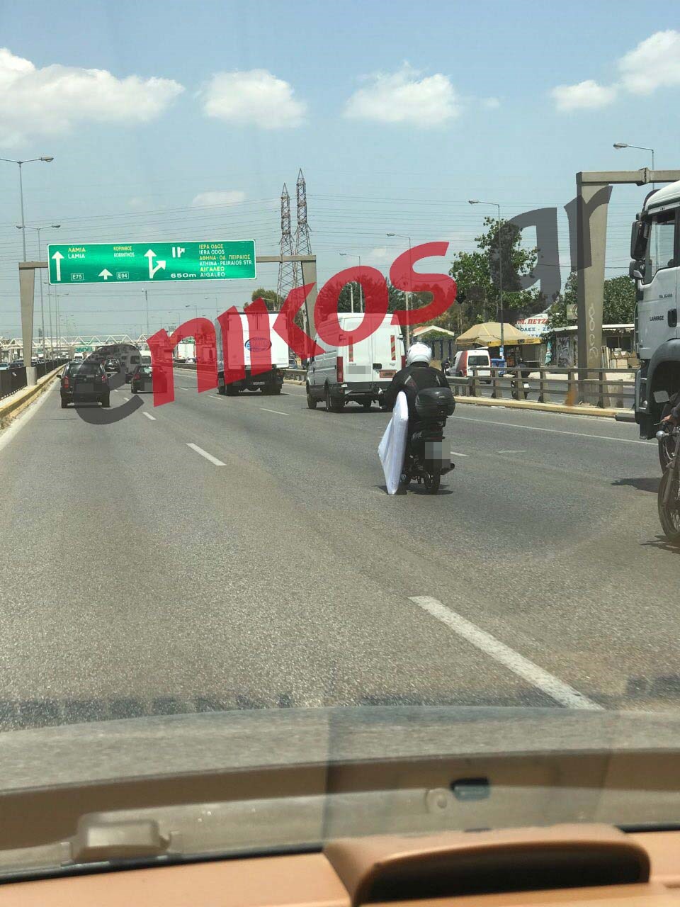 Έκπληκτοι έμειναν οι οδηγοί στην Εθνική Οδό Αθηνών – Λαμίας όταν είδαν έναν μοτοσικλετιστή να μεταφέρει με αυτόν τον ιδιαίτερα επικίνδυνο τρόπο ένα μεγάλο αντικείμενο.