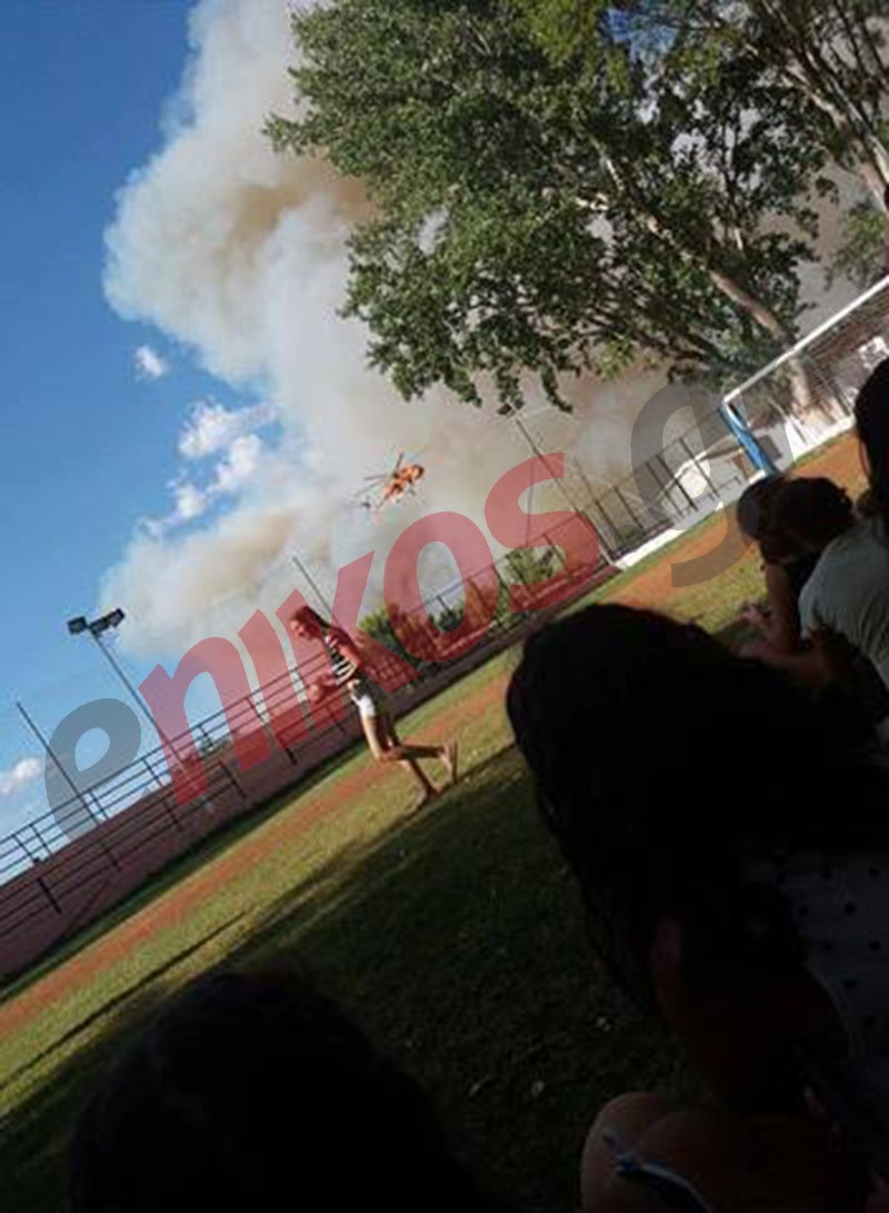 Μαίνεται η μεγάλη πυρκαγιά που έχει ξεσπάσει στον Κάλαμο, κοντά στην περιοχή των Αγίων Αποστόλων, με τις δυνάμεις της πυροσβεστικής υπηρεσίας να δίνουν μάχη με τις φλόγες.Οι κατασκηνώσεις στην περιοχή έχουν προληπτικά εκκενωθεί, ενώ σε φωτογραφία που μας έστειλε αναγνώστης του enikos.gr μέσα από κατασκήνωση, φαίνεται ελικόπτερο της πυροσβεστικής να πραγματοποιεί ρίψεις νερού από αέρος.