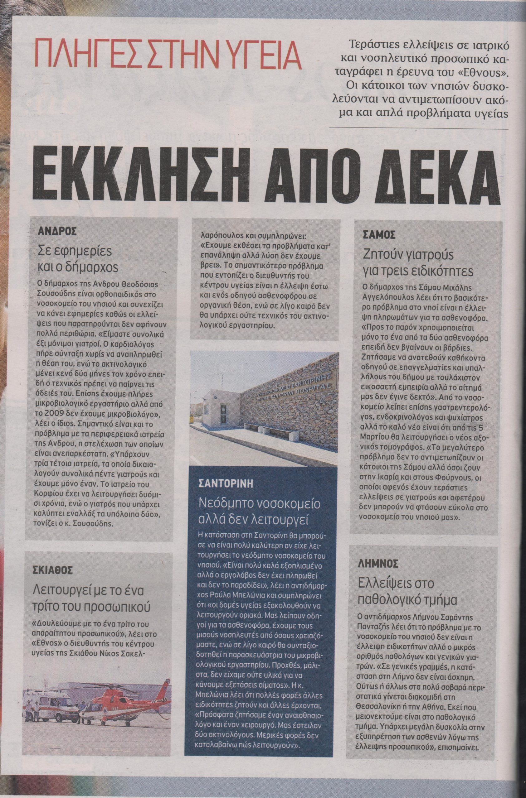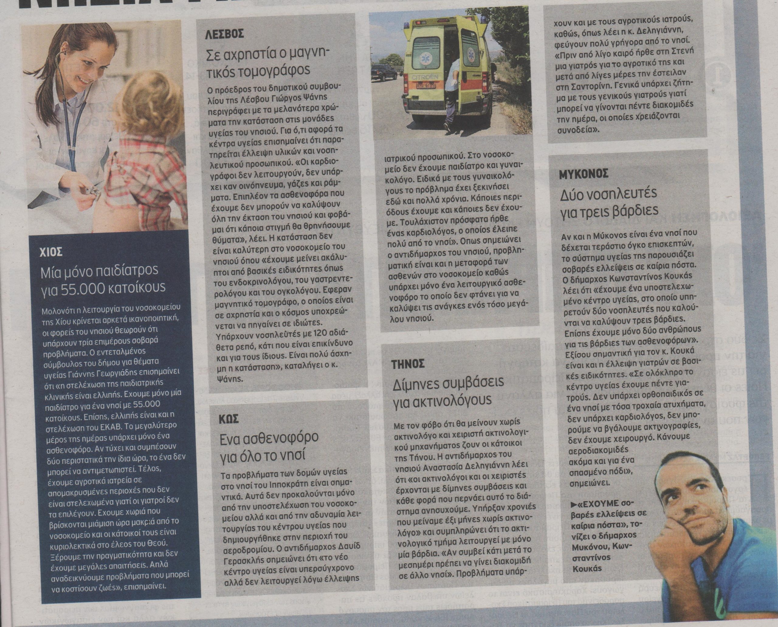 Με το φόβο ενός ξαφνικού προβλήματος υγείας που δεν θα μπορέσουν να αντιμετωπίσουν, ζουν οι κάτοικοι των νησιών, αφού οι δυσλειτουργίες στα νοσοκομεία και τα περιφερειακά ιατρεία των νησιών παραμένουν τεράστιες.
