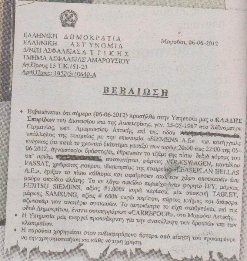 Κλοπή μυστήριο 11 μήνες πριν από τις εκλογές του 2012 στο αυτοκίνητο του διευθυντή μηχανοργάνωσης της Siemens, το όνομα του οποίου είχε ακουστεί στις ταραχώδεις εξελίξεις επί των ημερών του κάποτε ισχυρού αφεντικού του γερμανικού κολοσσού στην Ελλάδα, Μιχάλη Χριστοφοράκου, αποκαλύπτει η Δημοκρατία.