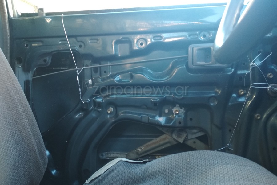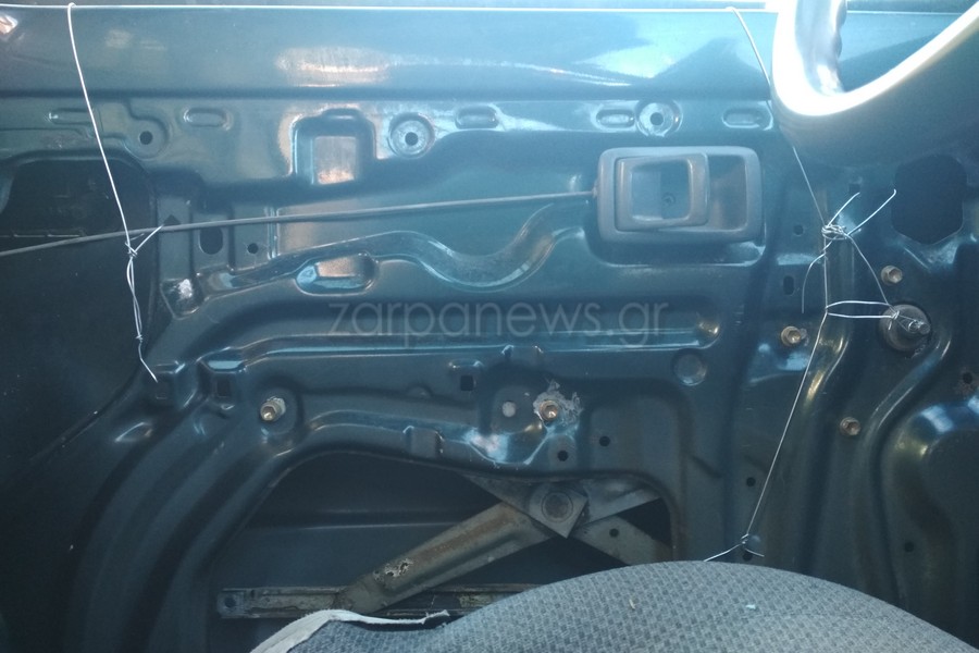 Στις φωτογραφίες του zarpanews.gr φαίνεται το εσωτερικό του αυτοκινήτου με μία πρόχειρη πόρτα που έχουν προσπαθήσει να βάλουν οι ιδιοκτήτες ως προσωρινή λύση