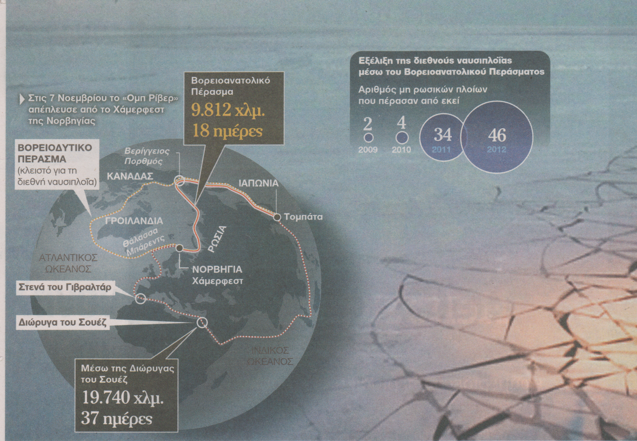Η περίσταση είναι γεμάτη συμβολισμούς. Η άνοδος της θερμοκρασίας της ατμόσφαιρας του πλανήτη έχει φέρει πλέον πολύ κοντά την πραγματοποίηση του ονείρου των εξερευνητών του 16ου αιώνα να χρησιμοποιήσουν τη βορειοδυτική θαλάσσια οδό για να συνδέσουν την Ευρώπη με τα πλούτη της Κίνας και της Ινδίας. Στην περίπτωση του “Ob River”, η αποστολή είναι λιγότερο ρομαντική: το δεξαμενόπλοιο έπρεπε να μεταφέρει στην Ιαπωνία 134.000 κυβικά μέτρα (LNG) από έναν τερματικό σταθμό εξαγωγής της Βόρειας Νορβηγίας και να αποκομίσει ένα καλό κέρδος. Και το έκανε ταξιδεύοντας μέσω Αρκτικής, βόρείως της Ρωσίας. Το ταξίδι απαίτησε τρεις εβδομάδες λιγότερο απ΄ ότι θα απαιτούσε αν το αέριο μεταφερόταν από τον συνιθισμένο δρόμο, μέσω Μεσογείου και διώρυγας του Σουέζ και περιπλέοντας την Ασία.
