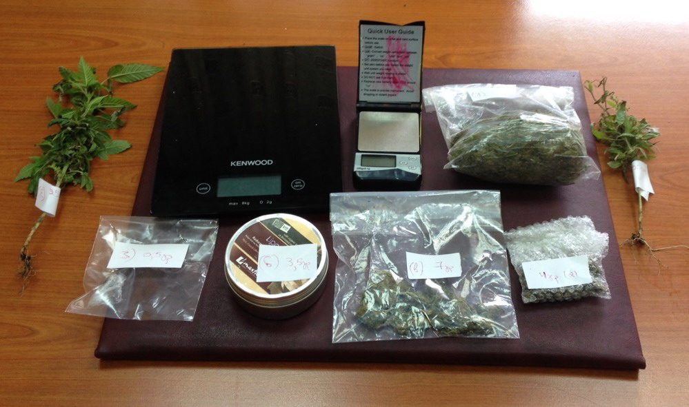 Ακολούθως σε έρευνα που πραγματοποιήθηκε στο σπίτι του, στην περιοχή Χαλκειός της Χίου, καθώς και σε χώρους κοντά σε αυτό βρέθηκαν 86 γραμμάρια ακατέργαστης κάνναβης (χασίς), δύο ηλεκτρονικές ζυγαριές ακριβείας, ένας αρχαίος αμφορέας και δύο δενδρύλλια κάνναβης, ύψους 20 και 25 εκατοστών, καλλιεργούμενα από τον ίδιο.