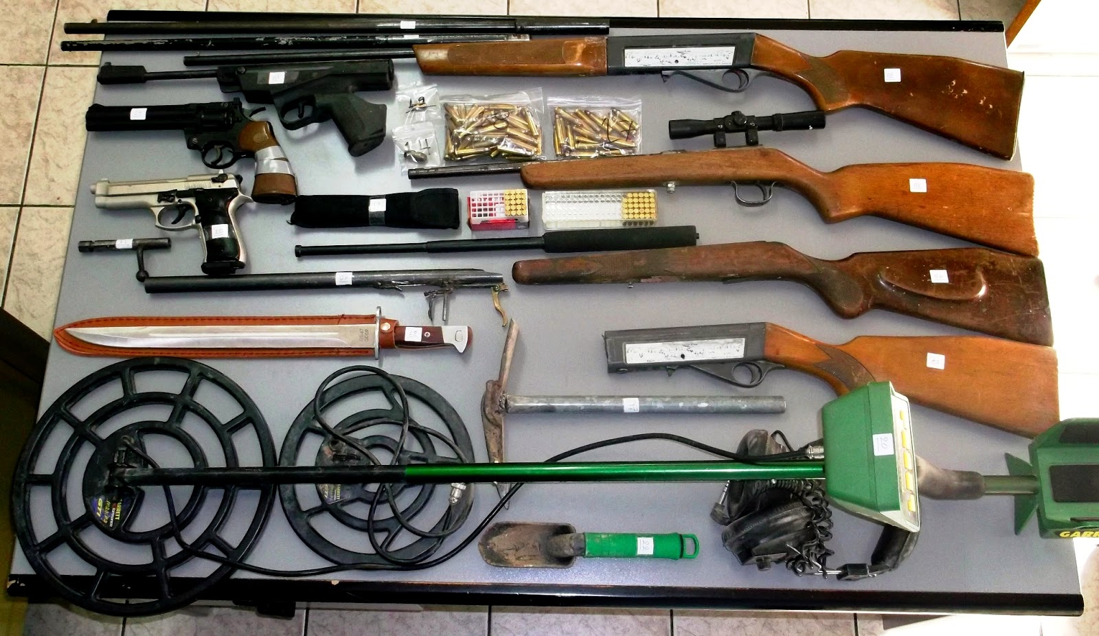 Κατασχέθηκαν 343 αντικείμενα, τα οποία εμπίπτουν στις διατάξεις της νομοθεσίας για την προστασία των αρχαιοτήτων και εν γένει της πολιτιστικής κληρονομιάς, τυφέκια, κυνηγετικά όπλα, πιστόλια, διάφορα εξαρτήματα όπλων και φυσίγγια