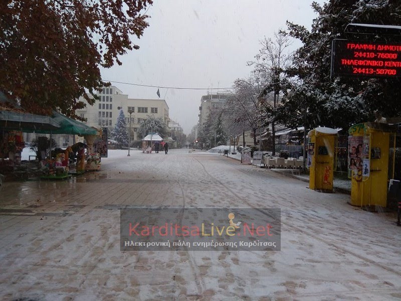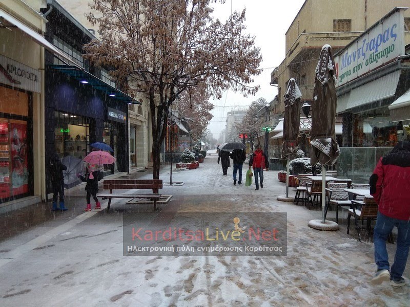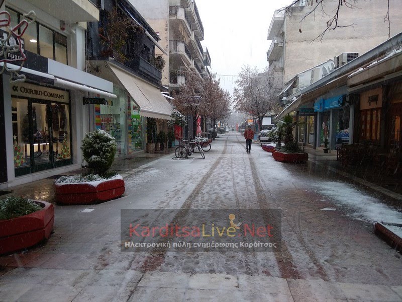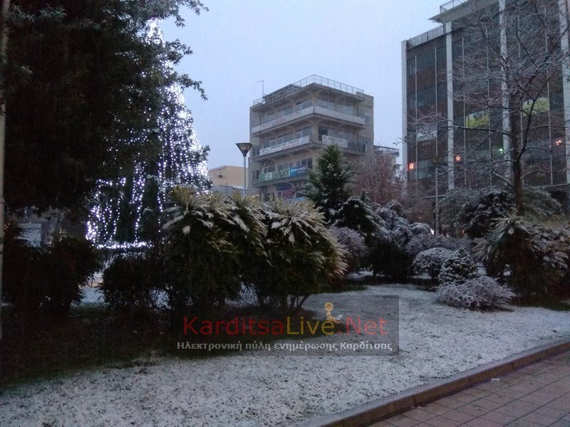 Τα λευκά φόρεσε και Καρδίτσα καθώς από τις 6 το πρωί της Πέμπτης ξεκίνησε να χιονίζει.