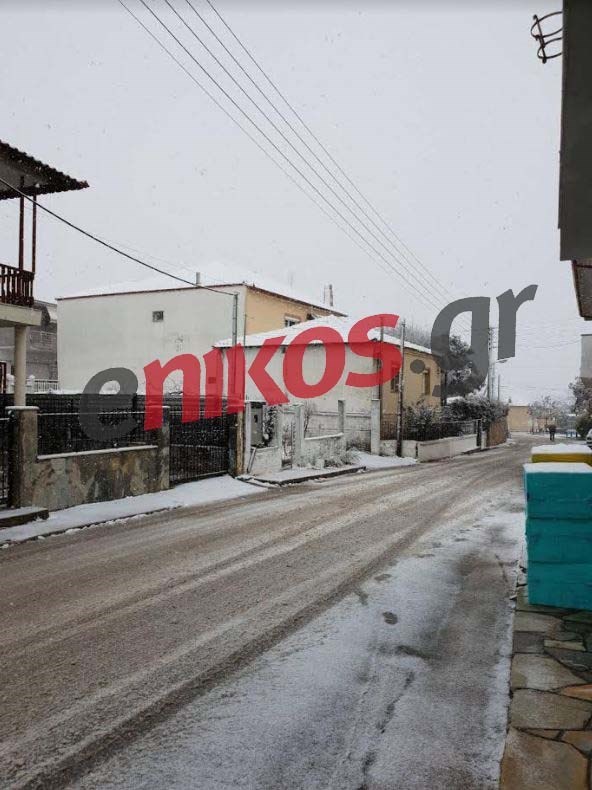 Χιονίζει από τα ξημερώματα και στην Κατερίνη.