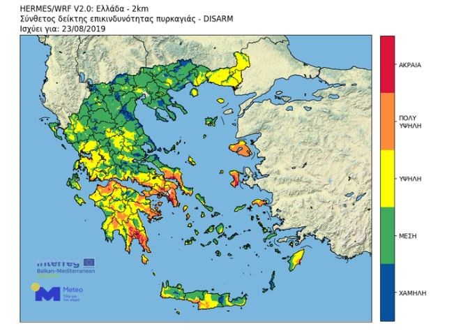 Το μελτέμι θα φτάνει τα 7 μποφόρ στο Αιγαίο μειώνοντας αρκετά τη δυσφορία, αυξάνοντας όμως τον κίνδυνο εκδήλωσης και εξάπλωσης δασικών πυρκαγιών στα νησιά του Αιγαίου και τα νοτιοανατολικά ηπειρωτικά.