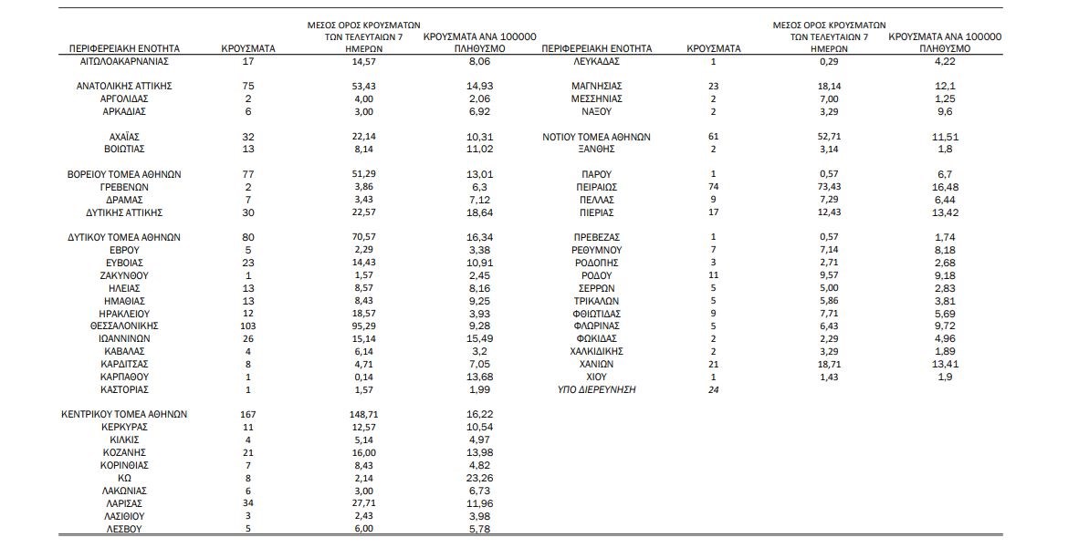 Αναλυτικά η γεωγραφική κατανομή των 1.112 νέων κρουσμάτων: